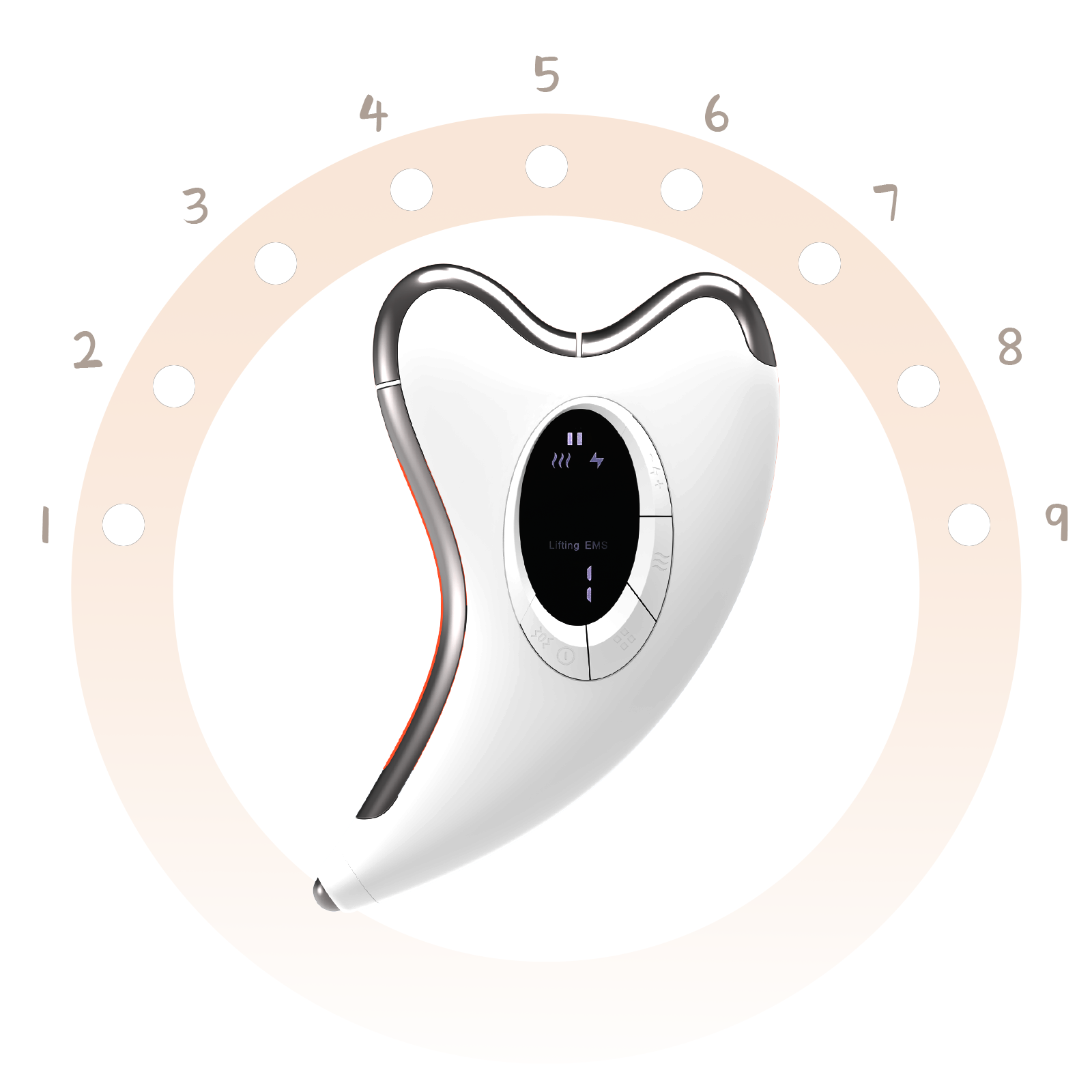 - 9 Intensity Levels – Adjustable modes with massage heads for precise care.