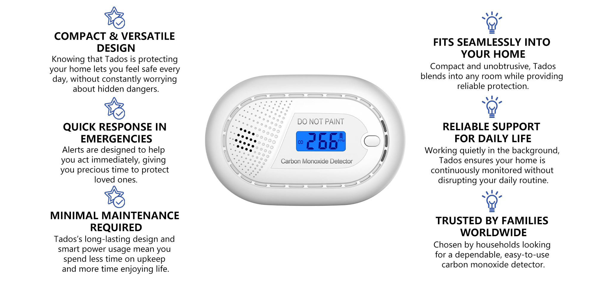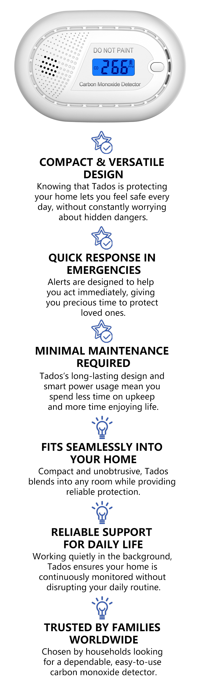 Tados Carbon Monoxide Detector — Protect What Matters Most — Reliable Carbon Monoxide Safety, Day and Night.