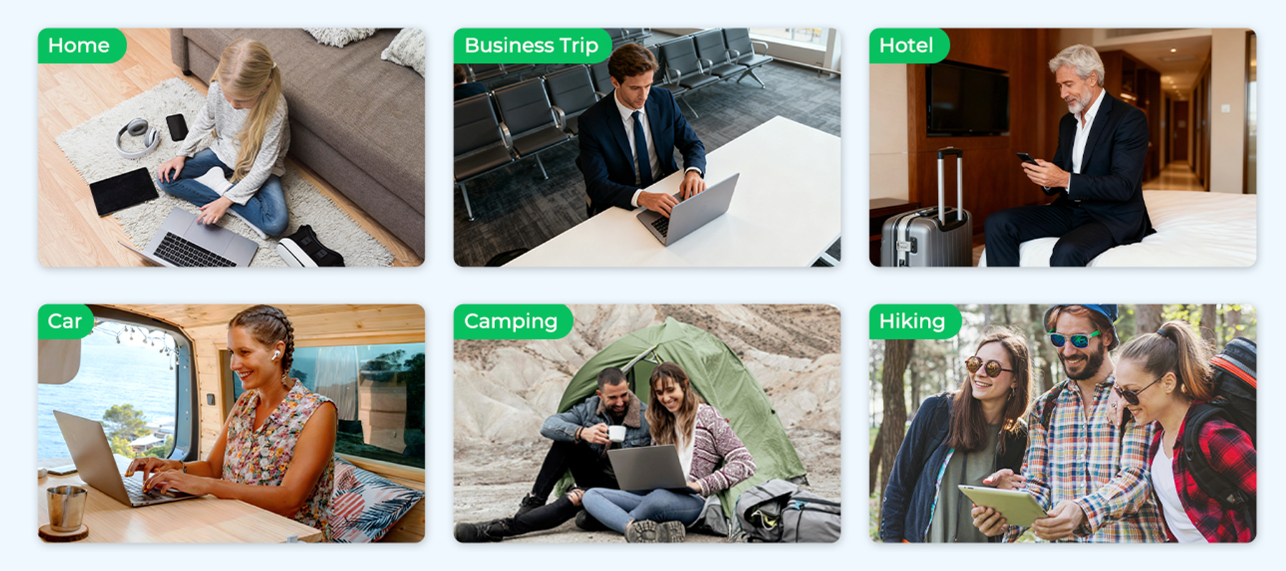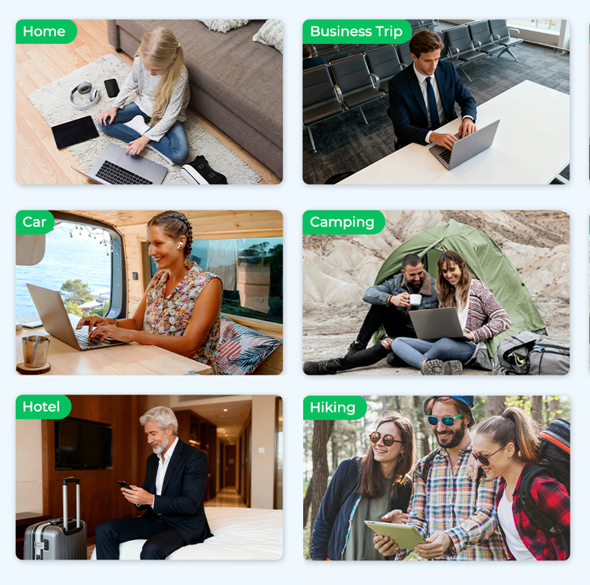 Supports up to 10 devices at the same time, including phones, laptops, tablets, desktops, and even smart home devices. Ideal for families, office teams, or multiple travelers, allowing everyone to stay connected without interruptions. Enjoy smooth, stable internet across multiple devices simultaneously, with no lag or slowdown.