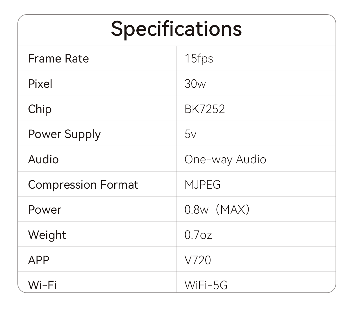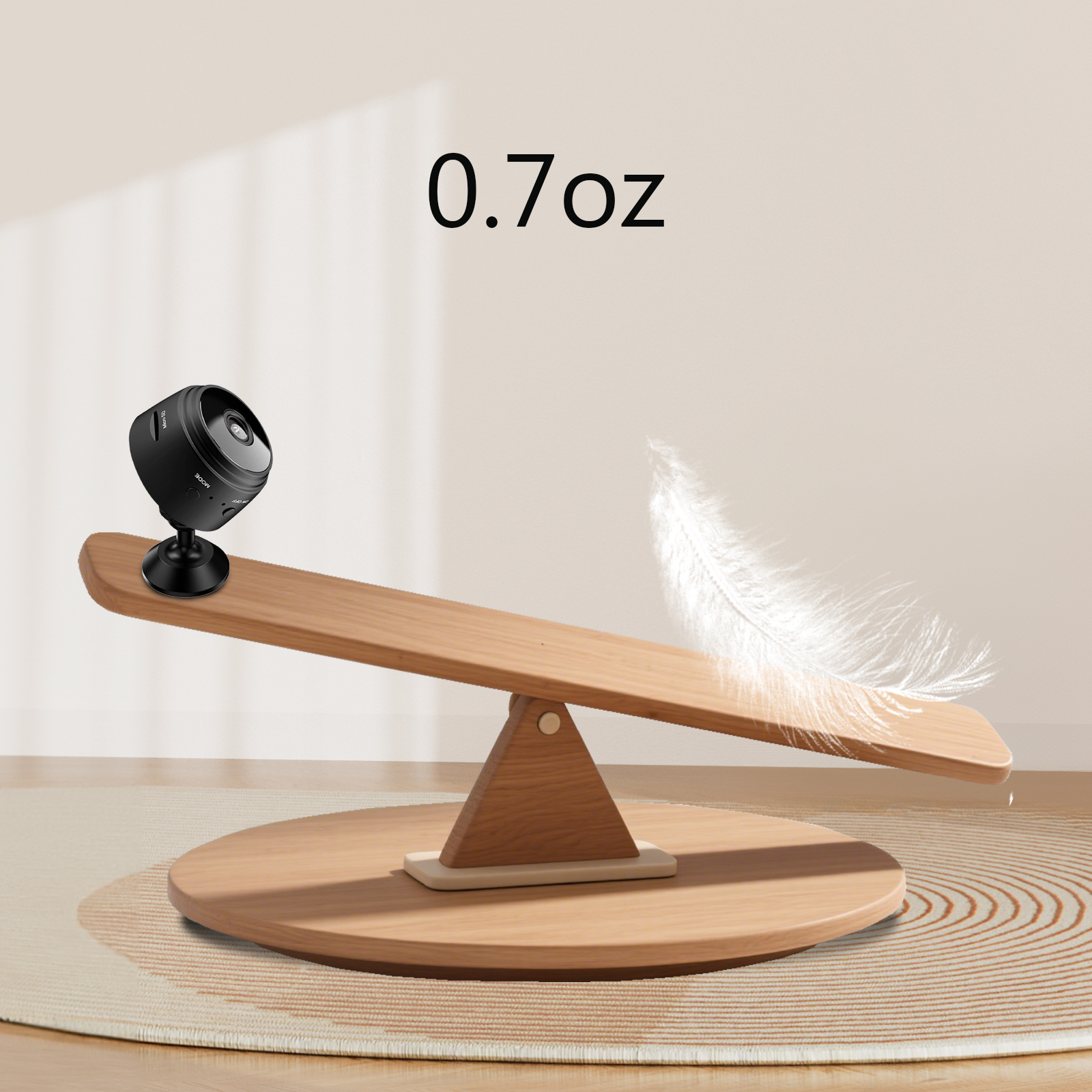 Its compact body and feather-light weight of just 0.7 oz make this camera easy to carry in a pocket or bag, so you can take it anywhere. Its discreet design also allows it to blend seamlessly into your home, providing subtle, hidden security without drawing any attention.